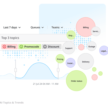 Surfaces recurring customer issues, sentiment shifts, and conversation patterns across calls. Equips managers to coach effectively, identify blind spots, and make data-driven decisions.